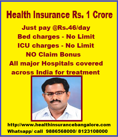 Health Insurance cover – Rs. 1 crore @ Rs. 46/- per day – No limit on bed charges – No limit on ICU chrges – No claim bonusMay 25, 2020 admin UncategorizedHealth Insurance plan cover – Rs. 1 Crore @ Rs. 46/- per day