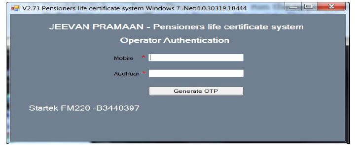 being done by the pensioners herself/himself). The operator/pensioner provides an Aadhaar Number and a Mobile number and receives an OTP which is provided in the online application form/ software module for registration.